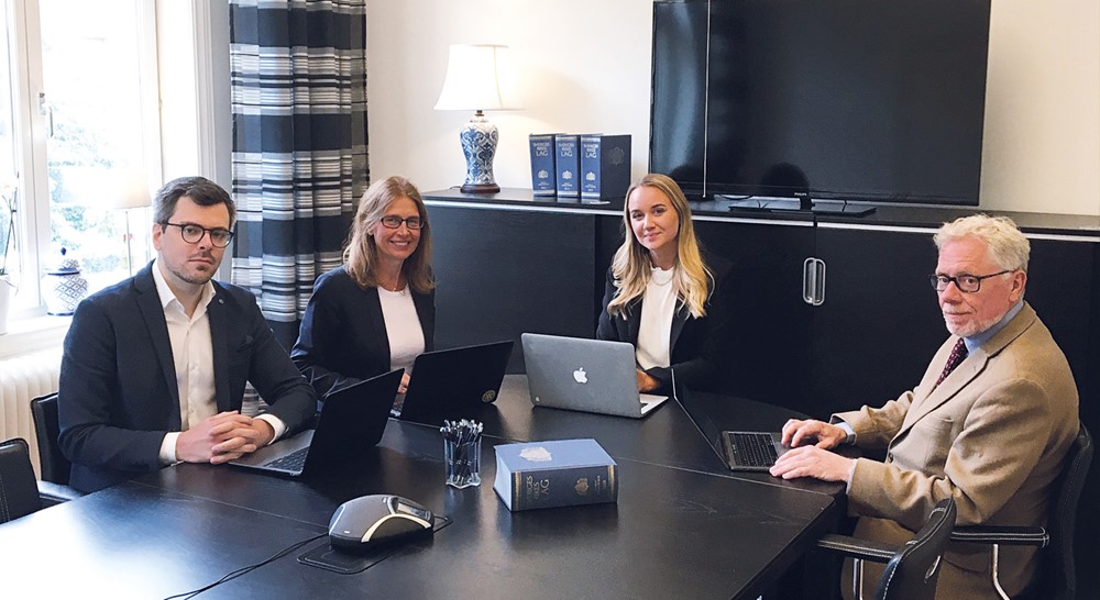 Fr.v. Jakob Reimhagen, biträdande jurist, Agneta Gustafsson, advokat, Frida Lundström, paralegal och Thomas Nyman, advokat.