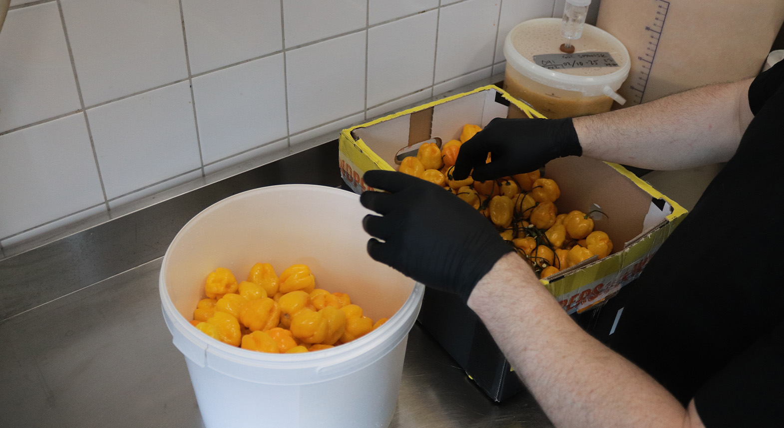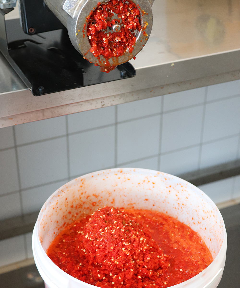 Fermenteringen är hjärtat i Såseriets hantverk. Patrik beskriver processen som både vetenskap och konst. ”När man jäser chili så laktofermenterar man. Man skapar en miljö med hjälp av salt där bara mjölksyrabakterier kan frodas,” förklarar han. ”För mig handlar det till hundra procent om smak och doft. En ofermenterad chilisås faller ganska platt – den saknar hela det där smak- och doftspektrat som ett vin har.” Resultatet är fermenterade chilisåser med djup, balans och karaktär – långt ifrån industriproduktion. Genom laktofermentering utvecklas naturliga aromer, en mjukare hetta samt ger varje sås sin speciella karaktär.