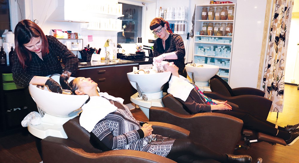 – Jag är ålagd att ha en utbildningsdag per termin för de anställda men jag snålar inte med det, utan låter dem gå utbildningar mycket oftare. De får också ta in modeller vid flera tillfällen, för att testa olika saker och utvecklas. När det kommer till växtfärger är det superbra, eftersom det inte finns någon manual utan vi måste uppfinna allt. Det känns som att vi ligger i spetsen för den nya tidens frisörer, avslutar Lena.