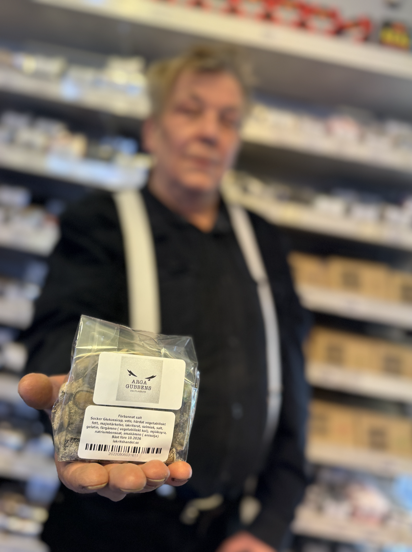 Det som från början var en följd av fysisk belastning och svårt lidande är i dag en del av butikens identitet. Många besökare kommer inte bara för lakritsen utan också för mötet bakom disken.