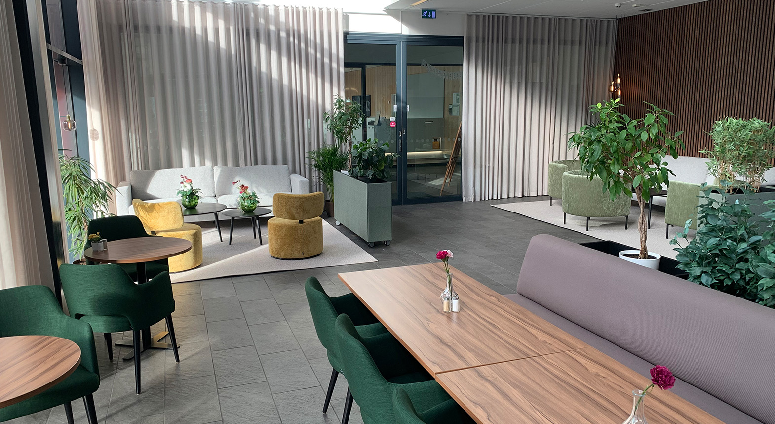 Festlokalen används ofta av företag och olika sällskap som bokar in frukostbufféer, luncher och kvällsevent. All mat lagas på plats och kan även hämtas färdigpackad.