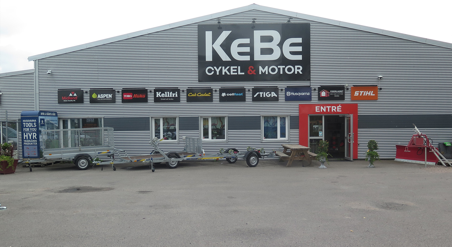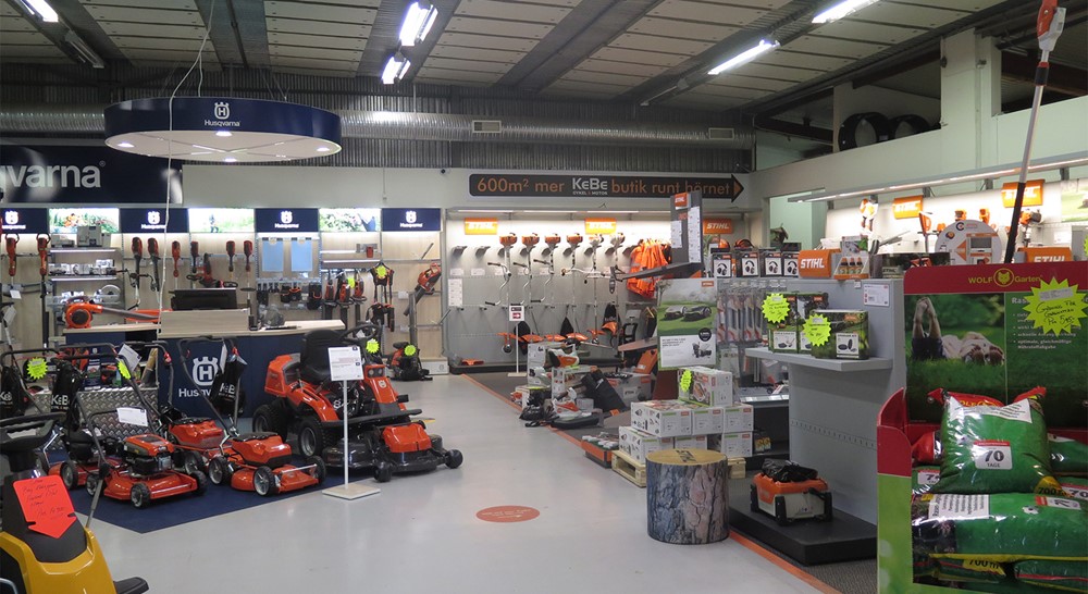 Hos KeBe hittar man idag allt man kan tänka sig som har med cyklar att göra. Men huvudnumret är numera maskinerna. Johan och Erik med personal säljer och serverar alla upptänkliga trädgårds- och skogsmaskiner – från motorsågar och röjsågar till åkgräsklippare, mindre lantbruksmaskiner och toppmoderna robotgräsklippare. Man är auktoriserad återförsäljare och servicepartner för väletablerade kvalitetsmärken som Husqvarna, Stihl, Kellfri och Stiga. På båtsidan jobbar man med välkända Yamaha och man har trailers för såväl båt som gräsklippare från TK Trailer.