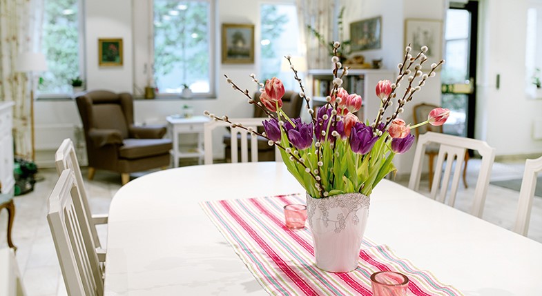 Atmosfären på Linnégården är varm och välkomnande vilket upplevs redan när man kommer in i entrén. Under sommarhalvåret lockar också den grönskande trädgården. För att de äldre ska må bra behövs en väl avvägd balans mellan näringsrika måltider, vila och aktiviteter. Omsorgsmåltiden som ofta är dagens höjdpunkt, ska innehålla både god mat och stimulans, till exempel i form av ett trevligt samtal.