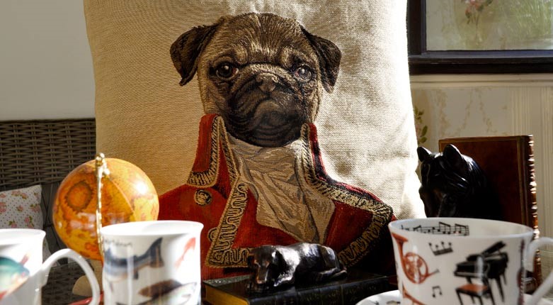 – Det är främst bruksvaror som har med te och bakning att göra, det är vår röda tråd. Men även viss typisk engelsk inredning som exempelvis kuddar med hundar i uniform på går att köpa här, tillägger hon.