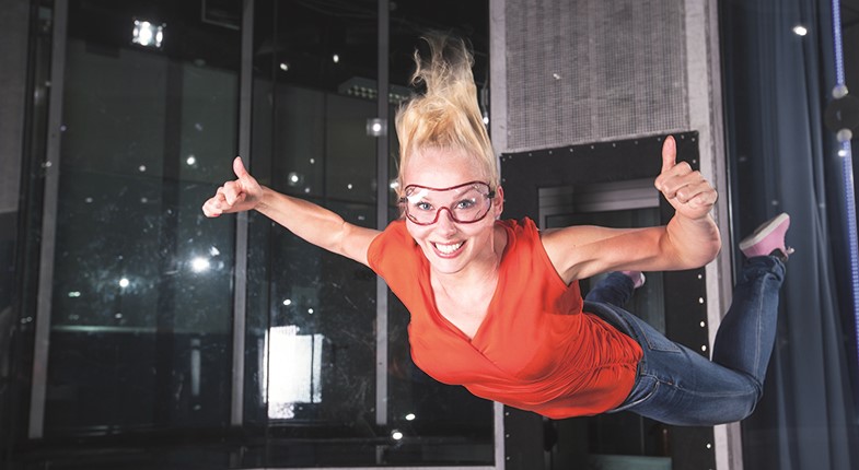En vindtunnel är en uppåtgående luftström inuti en glaskammare i vilken man flyger fritt. Utrustad med endast overall, hjälm, glasögon och hörselskydd upptäcker snart även nybörjaren den unika känslan av att ha kontroll över kroppens rörelser trots att man befinner sig i ett helt nytt element.