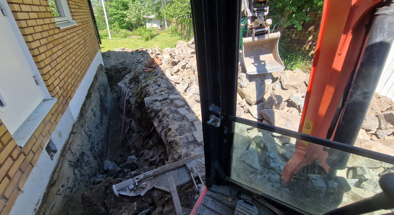 “Jag hade jobbat med stora grävmaskiner i Polen, men här i Sverige har jag valt mindre maskiner som passar perfekt för dräneringsjobb i trånga villaträdgårdar”, säger Pawel.