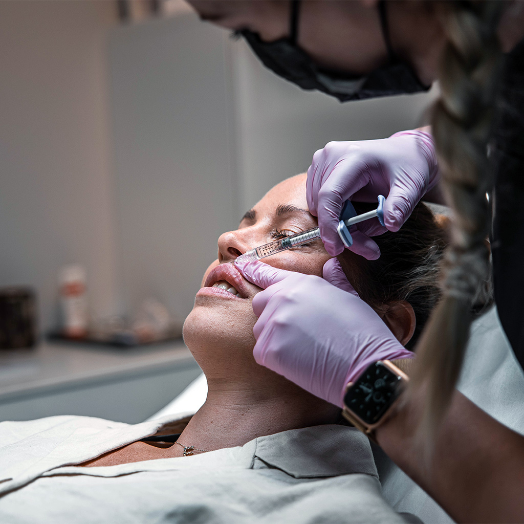 Klinikens behandlingar är många. Inom estetiska injektioner finns botox och fillers som är väldigt populärt och som bland annat används för att återskapa volym i ansiktet, hudföryngring och läppbehandling.