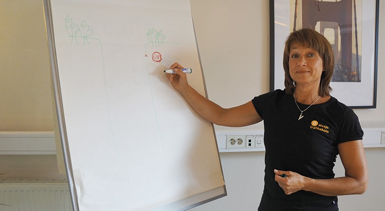 – Om man aldrig tidigare suttit bakom ratten blir man lätt trött på alla nya saker att lära sig och orkar därför inte mer än en lektion då och då. Om man kör hemma också är det bra att ta med sin handledare, då kan vi lägga upp en plan för att nå tidsmålet, säger Otti Bergendahl.