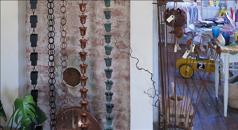 Här finns inredning och inredningsdetaljer för hem och trädgård. Noga utvalda. En fantastisk blandning av vackra saker – flera med japanska influenser, samt bruksföremål och vintage-föremål. Då Lenas dotter var utbytesstudent i Tokyo hittade de regnkedjor. En regnkedja kan du använda i din trädgård som stuprör, eller bara som dekoration. När det regnar så bildas det ett mycket vackert vattenspel.