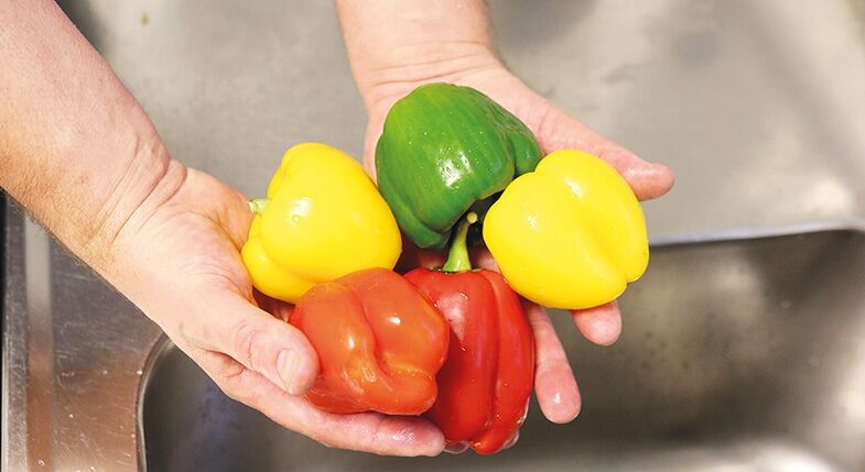 S:ta Maria har ett kök med mat som sträcker sig över samtliga verksamheter. – Vårt fina kök och maten, säger Sara Kindstedt, köks- och konferenschef. Vi tänker bra mat för barnen och bra mat för miljön. Vårt kök är Kravcertifierat; 70 procent av våra råvaror idag är ekologiska. Minst 25 procent är Kravmärkt, vilket är ovanligt bra för att vara en förskola. All mat lagas på plats och det är kort tid mellan att maten lagas och konsumeras. Barnen känner delaktighet i form av ljud och dofter från köket. Vi driver också ett café som serverar lunch, samt konferensluncher. De här luncherna har samma ursprung som skollunchen, så bra mat vill vi kunna servera. Vi kanske emellanåt behöver komplettera lunchen med vuxensmaker i form av kryddor och marinader.