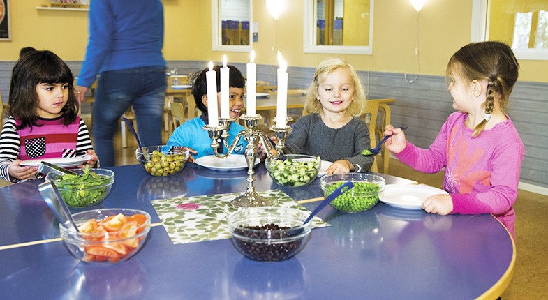 Och i köket arbetar kocken Siju Kottarathil Jose som brinner för barns rätt till vällagad och nyttig mat. Här är maten färgglad, smakrik, variationsrik och förhoppningsvis snart även Kravcertifierad.