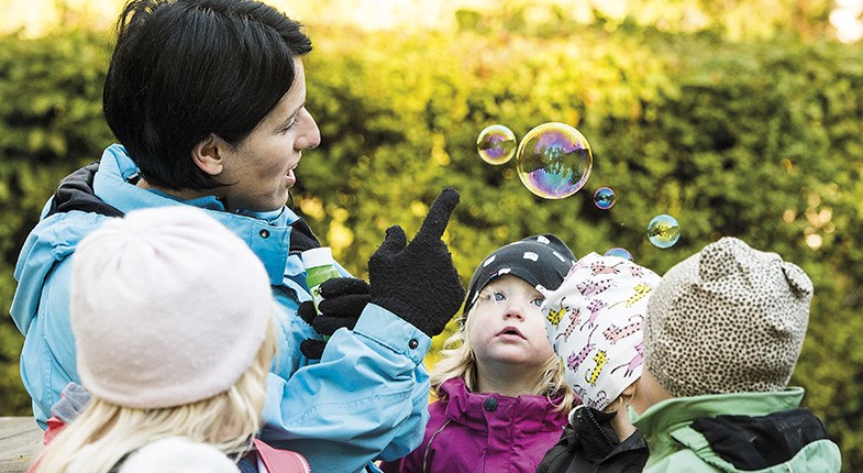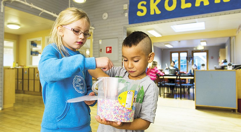 – Nuvarande tema är läsa, räkna och skriva, säger Inger och berättar hur de yngsta förskolebarnen leker fram kunskaper med hjälp av exempelvis bockarna Bruse och hur de äldre lär sig räkna genom att undersöka priser och liknande i affärer.