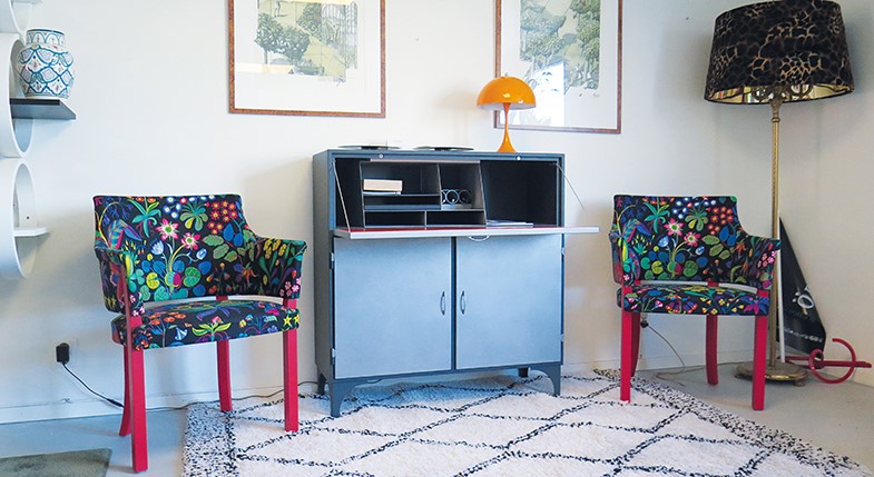 – Vi har en fåtölj inne nu som heter Riksdagen. Det är för att de här fåtöljerna har plats i Regeringskansliet bland annat. Det är en 30 år gammal fåtölj som har fått en ny kostym. Vi låter stoppa och klä om gamla möbler så de blir dressade och up-to-date, säger Paul.